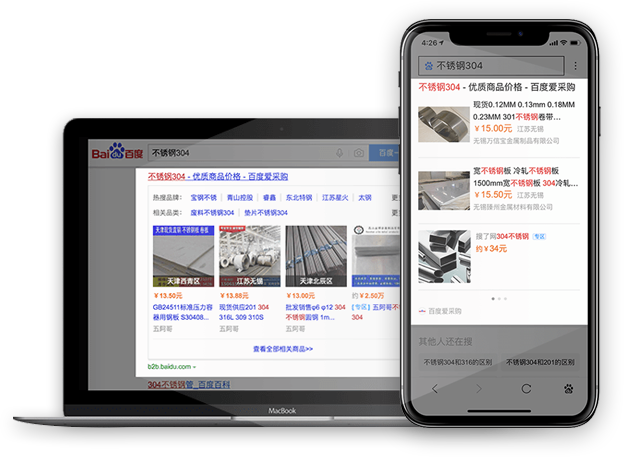 PC、移动网页、百度APP,多端同步展示商品信息,方便买家搜索触达