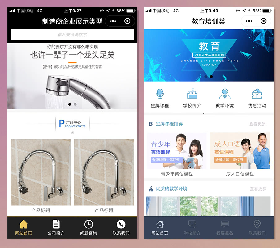 上述所有模板效果都是通过栏目和导航的多种展示样式组合实现的。并不是死板的模板!自己可以根据自身的需求在后台自由设置。实时预览更新,无须再提交审核!
