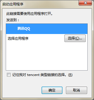 每个浏览器对于这段代码的实现方法可能略有不同,firefox里面会让你选择什么应用程序来打开这个链接,可能用户也会勾选“记住我对tencent类型链接的选择。(R)”,这样以后都不会弹出选择应用程序的这个对话框。