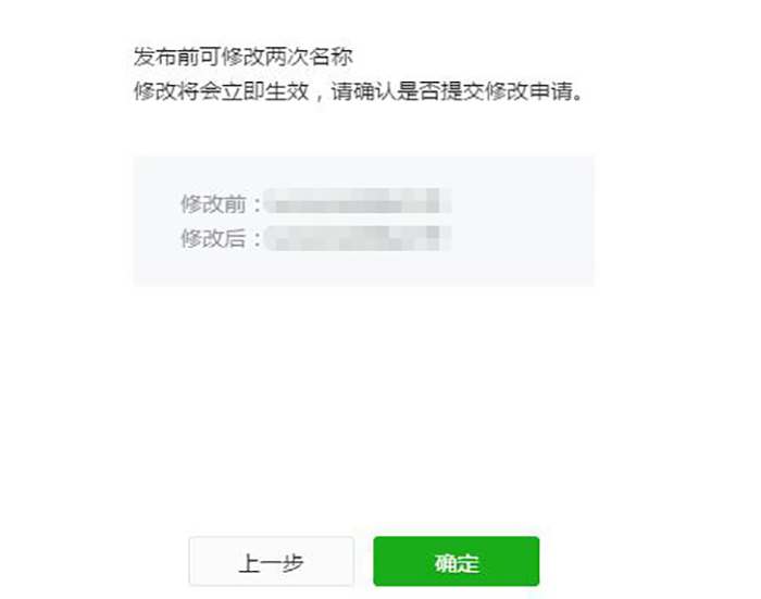 4)名称修改超过2次小程序要先发布后,再去微信认证,认证过程中会有改名入口,如果小程序未发布,即使小程序去微信认证也不会有改名入口。