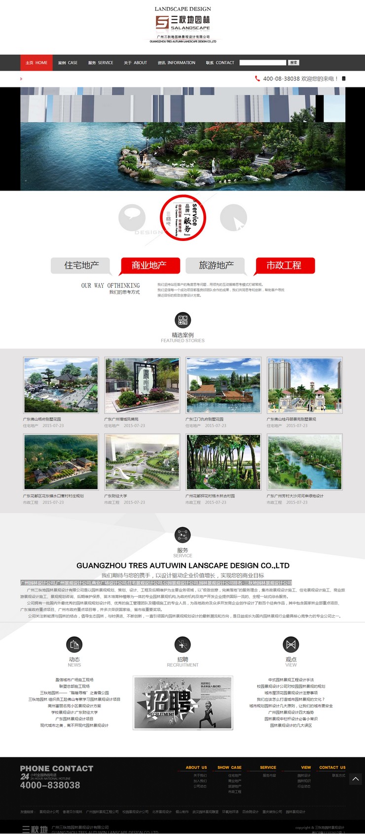 广州三秋地园林景观设计有限公司是以园林景观规划、策划、设计、工程及后期维护为主要业务领域,以“极致创意,完美落地”的服务理念,集市政景观设计施工、住宅景观设计施工、商业旅游景观设计施工、景观规划咨询、后期维护保养、苗木培育种植等为一体的专业园林景观机构,为政府机构及地产开发企业提供国际一流的、全程一站式综合服务。