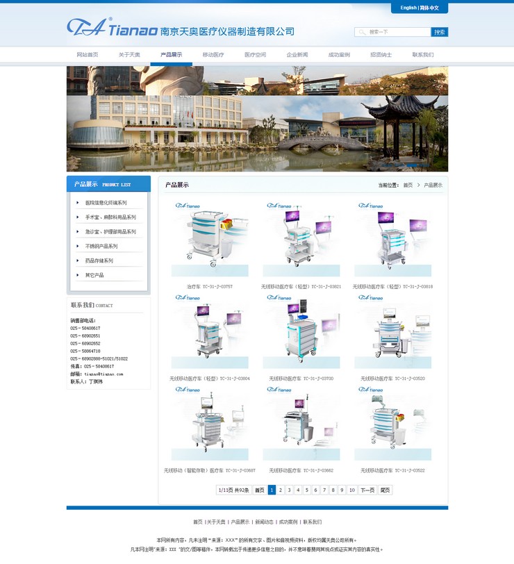 南京天奥医疗仪器制造有限公司中英双语品牌形象网站
