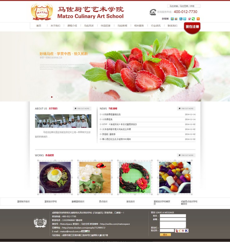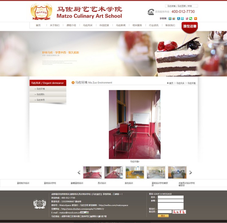 马佐由一支拥有国内外高学历,高技能的教师团队组成,曾赴新加坡、马来西亚、日本、香港、**等亚洲西点业发达的地区进行交流学习工作,在此期间,我校老师一直应邀应邀去北京录制《饮食养生汇》节目,受四川电视台、成都电视台、成都音乐之声FM102.6电台采访报道。同时,欧阳奋强导演的《驯夫记》电视剧选择在马佐空间为期一个多月的驻地拍摄。我院还拥有配套食堂,让您饮食无忧!