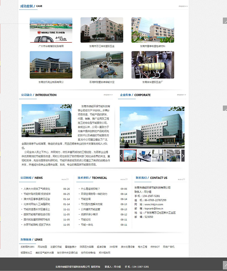 东莞市绿能环保节能科技有限公司营销型网站建设 东莞市绿能环保节能科技有限公司成立于2008年,主要从事智能控制、节能规划和节能项目改造、节能产品的研发、代理、销售、推广应用及工程施工的综合型企业。自成立以来,公司秉着“诚信、热情、优质、高效”的经营理念,一直致力于向客户提供创新的产品和领先的技术以及卓越的系统解决方案,最大化地满足客户的需求及长期价值。如今公司建立健全了广泛、全面的信息平台和雄厚、稳定的资金库,而且还拥有专业的技术支撑系统和人才队伍。 网站网址:http://www.lnkjcn.com/